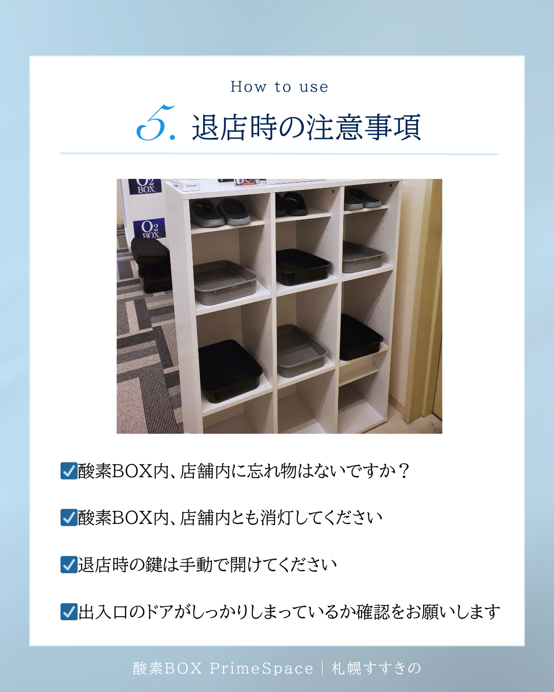 店舗内で使用した備品がありましたら、元の場所へお戻しください