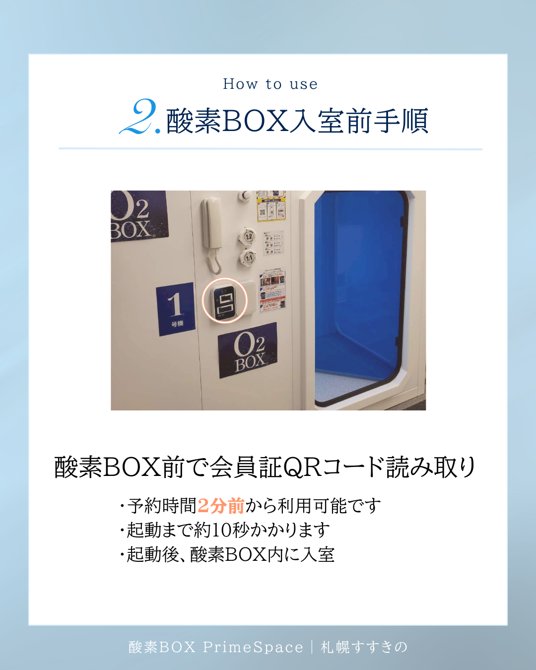 酸素BOXは ご予約時間の2分前よりご利用可能です